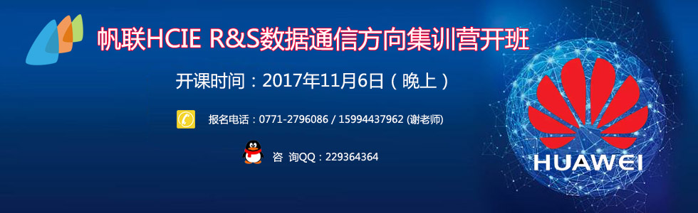 HCIE R&S集訓營開課時間:2017年11月 6 日(晚19:00) 授課講師:CCIE#27835蒙老師(同時具備華為HCNP官方認證授權講師) 報名地點:南寧市西鄉(xiāng)塘區(qū)大學東路98號世貿西城B座1501室 報名電話:0771-2796086 / 15994437962 (謝老師) 咨 詢QQ:229364364 官方網站:m.jxxjxx.com HCIE R&S集訓營學習要求如下: (1)學習基礎:HCNP或HCIE理論基礎 (2)學習時間:60-90天 (3)適用人群:在職學員/在校大學生 (4)學習內容:TroubleShooting(故障排錯)、TAC(故障技術支持)、LAB-CFG(實驗配置) HCIE R&S Lab考試流程: 考試時間:排錯(2小時)+技術支持(1小時)+實驗(5小時) 故障排錯環(huán)節(jié)(TS):≥10個Trouble Tickets 需要在規(guī)定時間內排除相應故障; 故障技術支持環(huán)節(jié)(TAC):多個實際工作場景,根據給出的線索和資源,在規(guī)定時間內分析故障原因; 實驗配置環(huán)節(jié)(LAB-CFG):8個Sections,根據給出的客戶要求,在(6臺路由器+4臺交換機)設備上完成相應的配置;